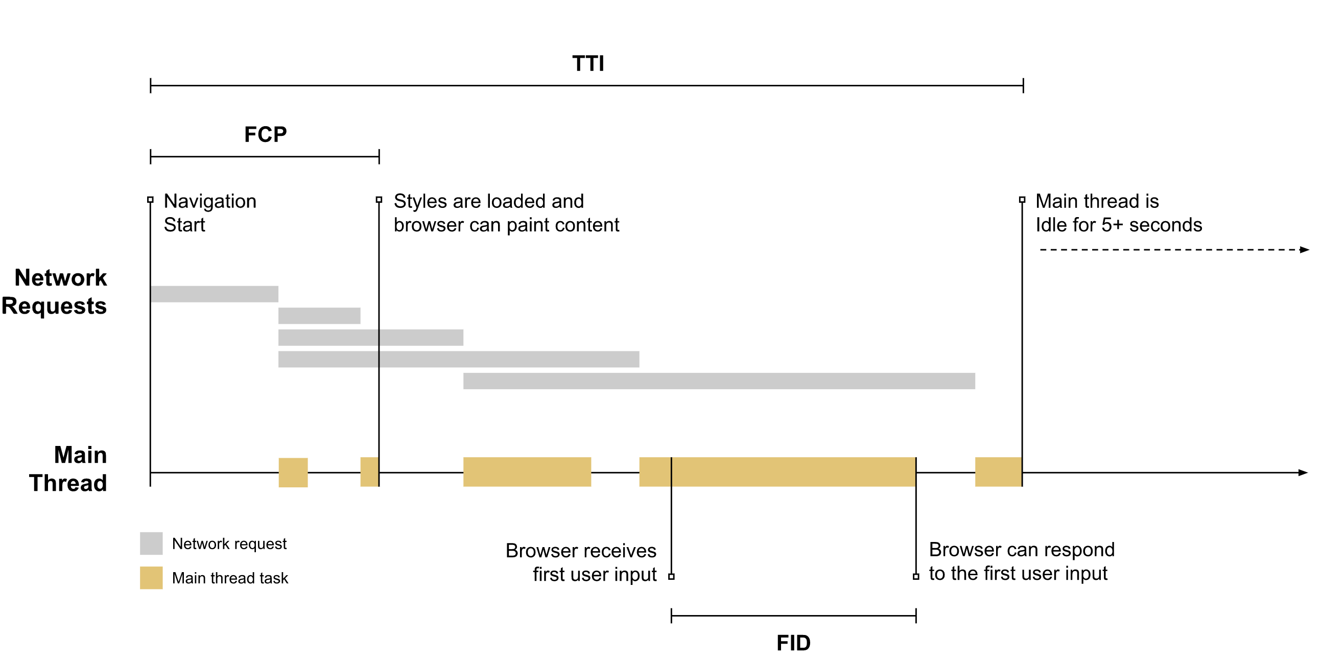 与 TTI 不同的是:FCI 发生在用户可以开始与页面交互时;TTI 发生在用户完全能够(可持续)与页面交互时。