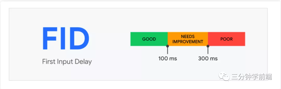 First Input Delay,首次输入延迟,用于记录在 FCP 和 TTI 之间用户首次与页面交互时响应的延迟。就是看用户交互事件触发到页面响应中间耗时多少,如果其中有长任务发生的话那么势必会造成响应时间变长。