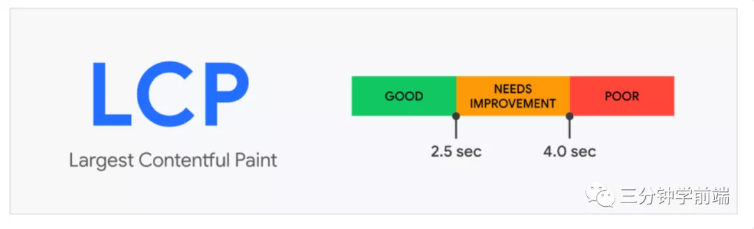 Largest Contentful Paint,最大内容绘制,用于记录视窗内最大的元素绘制的时间,该时间会随着页面渲染变化而变化,因为页面中的最大元素在渲染过程中可能会发生改变,另外该指标会在用户第一次交互后停止记录。指标变化如下图: